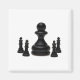 Stora svarta schackpjäser omges av fyra små schackpjäser kung isolerade mot den vita bakgrunden. Ta storhet.