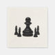 Stora svarta schackpjäser omges av fyra små schackpjäser kung isolerade mot den vita bakgrunden. Ta storhet.