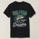 Den svarta t-tröjan visar tydligt hur en stor fisk som läcker ut från blå och vit vatten. Orden "BIG FISH" skrivs ut i ett stort, stiliserat teckensnitt med en övertoning av blått och grönt högst upp. Ord "Bigger" är i ett mindre, kursivt vitt teckensnitt och "Dreams" i ett större, flytande vitt skript vid grund. Denna utformning förmedlar ett budskap om ambition och strävan efter stora ambitioner, sannolikt med ett fisketema.