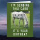 Födelsedag med ett lustigt hästmeddelande! Jag skickar det här kortet för din födelsedag. Bild är ett foto av en vit häst som betar i fält.