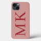 Snyggtens telefonfodral i ro än med initialer i brev med stor belastning. Chicens telefonfodral med ett rent monogram i djupt rött brev mot dammig rosa bakgrund. Monogrammed-telefonfodral i rosa och starkt rött för en snyggt flicka.