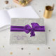 Chic Quinceañera eller Sweet 16 party gäst bok, som är gjord i en silvrets sekvins, med grafik av en stor lila som tittar ribbon och båge, på framsidan. Anpassa texten fält till din speciella dag.