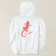 On the back of your hoodie is a large red gecko. Along with it, your name is displayed at a 30-degree angle. On the front left, there's a smaller gecko and your name.