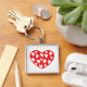Big Red Heart Keychain Fyrkantig Silverfärgad Nyckelring