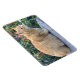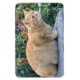 underbar katt med grönt öga sitta på en mur, löv i bakgrunden är färgad för fall