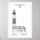 Denna minimalistiska illustration visar den eleganta formen på Big Sable Point Lighthouse, en av Michigans mest ikoniska marina landmärken. Mot en ren vit bakgrund framhäver konstverket fyrens slående arkitektoniska detaljer – från dess höga cylindriska tegelstruktur till den intilliggande förvaltarens bostad vid dess bas.