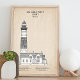 Denna unika illustration av Big Sable Point Lighthouse presenteras som en sepiafärgad ritning, som kombinerar arkitektonisk ritnings precision med historiskt minnes värme. Den mjuka bruna bakgrunden frammanar gammalt papper och antika ingenjörsplaner, vilket ger strukturen en tidlös, arkivlik kvalitet.