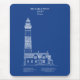 Denna illustration av Big Sable Point Lighthouse presenteras i stil med en klassisk blå ritning, som förvandlar den historiska strukturen till något som känns både tekniskt och tidlöst. Mot en rikblå bakgrund speglar den skarpa linjedragningen arkitektoniska ritningsplaner och framhäver fyrens exakta proportioner och strukturella karaktär.