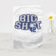 Big Shot Soccer Ball-designen har en kurva över kollegialt brev från stil med O i "shot" som en målad blå och vit fotboll, futball eller fotboll. Underbar för sportfantaster i alla åldrar.