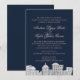 Big City skyline silhouette bröllopsinbjudan accentuerad med blått. Anpassa text till kostym i stil.