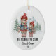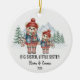 Celebrate the special bond between siblings with this Big Sister, Little Sister Personalized Christmas Ornament, featuring two adorable bears dressed in cozy winter outfits against a snowy forest backdrop.