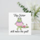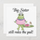 Storsisterkartonger, plattor, prydnadsföremål, anteckningsböcker, dekorativ kudde, gelmunssaxar, porträtt, klistermärken och andra stora systerkläder och presentartiklar som innehåller en flickgroda och liljepad och text med texten "Big Sister still regler the pad!". Underbara syskon ger till det äldre syrran när nyfödd bebis bror eller baby syster kommer!