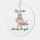 Storsisterkartonger, plattor, prydnadsföremål, anteckningsböcker, dekorativ kudde, gelmunssaxar, porträtt, klistermärken och andra stora systerkläder och presentartiklar som innehåller en flickgroda och liljepad och text med texten "Big Sister still regler the pad!". Underbara syskon ger till det äldre syrran när nyfödd bebis bror eller baby syster kommer!