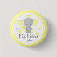 Gult safari elefant med fåglar och hjärta på en knapp som säger "Big Sister to Be" för babydusch party dekoration ©URBAN WILLOW & LITTLE PUMPKINS PIX och Decamp Studios