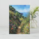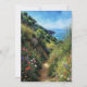 Det här vykortet har en vattenfärg porträtt i en vandringsbana omgiven av färgstarka vilda blommor i Big Sur i Kalifornien.