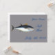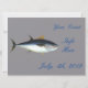 Bigeye Tuna Ahi Deep Diving Fish Illustration för att anpassa, anpassa genom att ändra till ditt namn eller meddelande. Storögd tonfisk kan bli upp till 8 fot lång och 400 pund. I Hawaii är de en av två arter som heter Ahi. Med en konstillustration av en storögd tonfisk och namn.