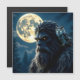 Bigfoot magnet. En Sasquatch med gyllene glödande ögon med uggla på axeln med full månskog i blå nyans.