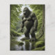 Ai art som skildrar Sasquatch som står i en flod som rinner genom skogen.