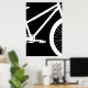 Den här contemporaryn stil poster en överdimensionerad vit cykelfront silhuett på en svart bakgrund som skapar ett geometriskt, modernt utseende. Du kan enkelt ändra bakgrunden till färg genom att klicka på Redigera design. Den här utskriften visas i en vit ram (ingår inte).
