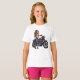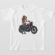 This is a digital illustration in a realistic style depicting a young woman with a motorcycle. The image captures a sense of freedom and adventure