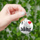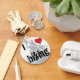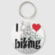 Den här designen "I kärlek biking" eller "I Heart biking" har ett modernt, krackat svart typsnitt och ett rött hjärta. Den visar också en stor bakgrundsbild av grått-cykeln, svart platta och grönt löv.