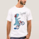 Den här lekande och uppfinningsrika designen har en T-Rex, den ikoniska dinosauren, som humoristiskt ägnar sig åt en modern aktivitet - att cykla rött. Dinosauren är en halvrosa som bär en röd hjälm för säkerheten, vilket ökar bildens visuella karaktär. Som man ser på Gavins t-shirt, T-Rex-färgen och cykelns utseende, skapar denna utformning både öga-fångst och roligt. Denna bild är perfekt för en T-avslappnad-shirt avsedd för fläkt av både dinosaurier och biking, där äventyr kombineras med förhistorisk framfart på ett ljusare sätt.
