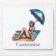 Bikini Girl Beach Napping under ett strandparaply för att anpassa sig