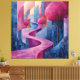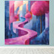 Förvandla dina väggar med detta fängslande monokroma rosa och blå abstrakta landskap. Med en slingrande stig omgiven av djärva geometriska strukturer och livfulla rosa träd, förenar detta konstverk naturliga och urbana element i en harmonisk palett. Den dynamiska kompositionen och det mjuka samspelet mellan ljus och skugga skapar djup och lugn, vilket gör det till en perfekt mittpunkt för moderna, minimalistiska eller samtida interiörer. Ett fantastiskt val för konstelskare som söker en unik och livfull design.