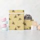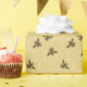 Satin guld bikupa rutnät med ett mönster av flygande honungsbin för presentinslagning av barnkalaspresenter och dekoration av honungsburk bröllopsfavoriter.