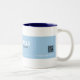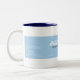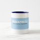 Car Business Two-Tone Coffee Mugg har en vit stiliserad typografi av företaget namn på blå remsbakgrund.