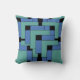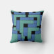 Bilaga dekorativ kudde i kvadrat och lumbalfält. Bilagan är en abstrakt utformning som skapats av Vexenwraith och består av turkos och blå block på svart bakgrund.