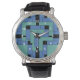 Bilaga manar, kvinnors och barnWatch-klockor med vita nummer. Bilagan är en abstrakt utformning som skapats av Vexenwraith och består av turkos och blå block på svart bakgrund.