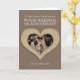 Femte bröllop-årsjubiléet. Anpassa det här brunnerade träeffektskortet för femårsdagen av bröllop med ditt förhållande, din bild och dina år av giftermål och ditt invändiga kortmeddelande. Exemplet lyder: Till våra varmaste vänner på er Wood Bröllop-årsdag den 25 maj 2024-2029. Konst och design av träronhjärteformade effekter från Sarah Trett för www.mylittleeden.com