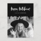 Spooky Halloween-fotovykort med "Happy halloween" i vit handskrift. Överst på designen finns svartfärgad blodsdroppning på fotot som visas nedan. Anpassa framsidan av det blodiga Halloween-vykortet med ditt namn. Baksidan av vykortet innehåller ditt meddelande om returadress och anpassningsbar.