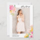 Klass 2024! En inbjudan till Bho chic vår, rosa med sommarvattenfärg i blommigt studenten med mjuk pastellfärg, vattenfärg för gult och orange och blommigt guld för konetti typografi glitter studentfest med handmålade blommor, grönt vattenfärg inbjudan med löv geometrisk terarium grenar på redigerbar vit bakgrund, lägg till ditt foto längst bak, guld för öppet hus!