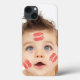 Bilden av den små gulliga cupiden, closeupporträtt av det nätt barnet med röda kyssar på hans kinder som isolerades på vitbakgrund, den nyfikna pysen med härliga blåttögon, tittar i kameran, alla hjärtans dag© och ® Bigstock® - all reserverad rättigheter.