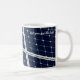 Stängning av en solenergipanel för att generera miljövänlig och förnybar energi för att mata gatulampor och andra anordningar. Djup blå bakgrund och ett vitt rutnät. Kaffe mugg. Anpassade. Du kan ändra bilden och du kan ändra eller ta bort två malltexter oberoende av varandra: Med Sol och Ja är du bäst.