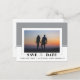 Modern grått färg blockerar bröllop spara datum bildvykort. Den övre delen av Spara datumsymbolen är av grått färg medan grund är vitt med texten. Det innehåller också ett foto av paret.
