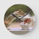 En bild av en jordekorre med en chinatekopp med ekorreanseende på dess hind ben tittar in i koppen. Detta jordekorrefoto togs från sidan, så att du kan se chippie'sna som tillbaka göras randig och den nätt blom- röd rosdesignen av vitbenporslintekoppen. Jordekorren står på en vitdäcktailing, och bakgrunden är av blommor och gröntträd. Denna gulliga jordekorrebild kan lätt skräddarsy och skrivas ut på många olika fotoprodukter. Det är teatid, så ska dig häll?