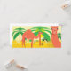 Den här klippan har två kameler i öknen nära handflatan träd.