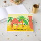 Den här klippan har två kameler i öknen nära handflatan träd.