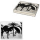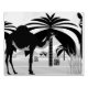 Den här klippan har två kameler i öknen nära handflatan träd.
