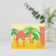 Den här klippan har två kameler i öknen nära handflatan träd.