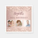 En kapkin för en gigantisk och glamorös 50:e (eller någon ålder) födelsedagsfest. En övertoningsbakgrund i ro guld dekorerade konfekti. Texten: namn är skrivet i mörk ro guld med ett stort modernt, handskript i stil. Anpassa och lägg till namn, 50 år och 3 år av dina egna foton av födelsedagsflickan, hennes familj, vänner eller husdjur.