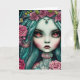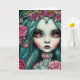 Koral, konstillustration, gratulationskort för grafik från Ricaso - en illustration av en gotisk flicka med blomdetaljer, hon har långa färgad hår med korall rosa ros