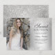 En modern enkel silver-glitter-gnistes snyggt på metallfolie silver Sweet sixteen födelsedagsfest inbjudan, lägg till bild.