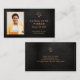 Modern elegant lyxsvart läderutseendet och guld-kopparskolans studenten-visitkortsmall med anpassningsbarnas foto och text.