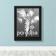 tropikernorna sträckte ut kanvas väggkonst handflatan träd fotosvart och vitt foto med textparadis för dekorering hemma eller på kontoret. Originalkonst och fotografi av Ann Powell på konst och väggkonst. Fotografier copyright Ann Powll all högers Reserverat.