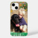 Cute iPhone 14 fodral med blommor och grönt i gräns. Lägg till ditt favoritfoto för att anpassa fodral.