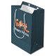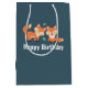 En födelsedagspressning med en bild på 2 orangars rävar tittar söta och lycklig. Mörk grönt bakgrund.